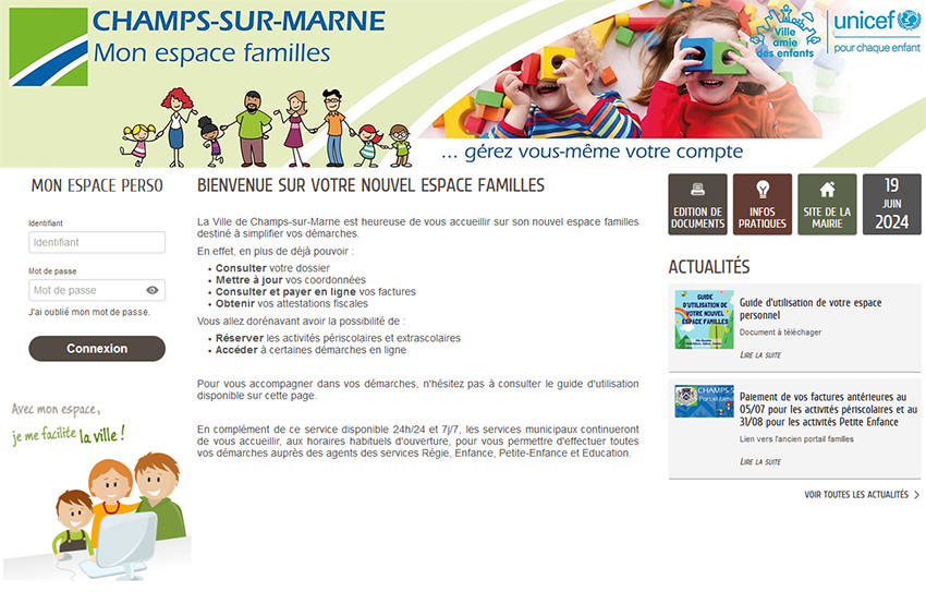 Votre commune de Champs-sur-Marne est heureuse de vous accueillir sur votre nouveau Espace familles.